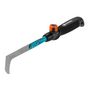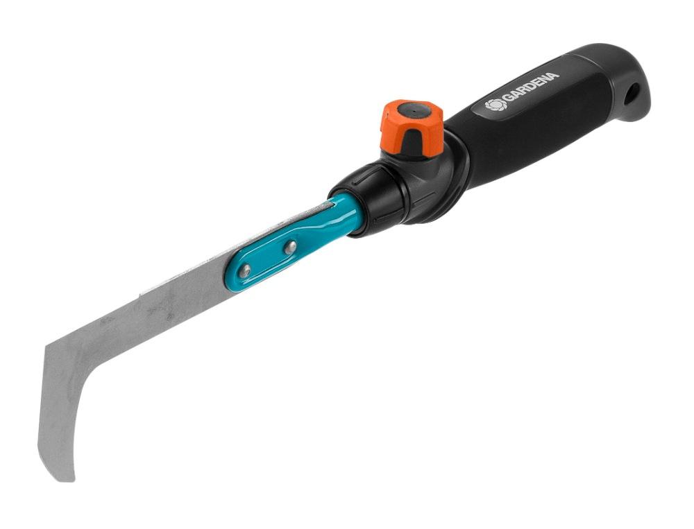 - Un outil combisystemextensible et interchangeable: Ce couteau-émousseur fait partie de la gamme combisystem GARDENA. Sa poignée est facilement amovible (molette de fixation en plastique souple) et peut être remplacée par tous les manches combisystempour un travail accroupi ou debout. La connexion fiable entre le manche et l'outil assure un travail en toute sécurité.