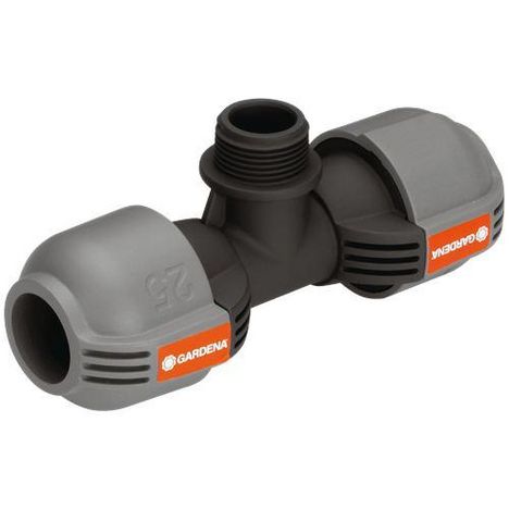 Élément du système d',arrosage GARDENA, le té 25 mm à filetage 3/4 mâle GARDENA sert à raccorder la turbine escamotable T 380 (Réf. 8205-29) et l',arroseur oscillant escamotable R 140 (Réf. 1537-29) au sein d',une conduite.La technologie de connexion simple brevetée Quick et, Easy permet d
