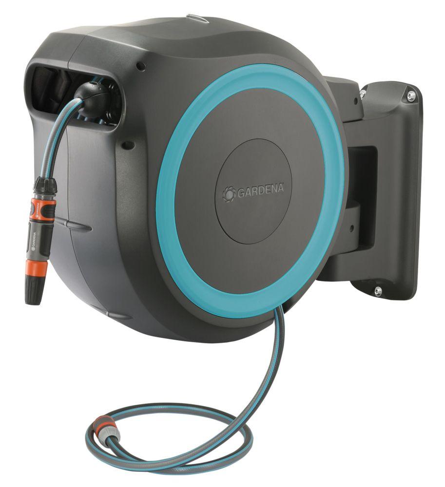 Le dévidoir automatique mural RollUp M/L 25 m GARDENA est idéal pour arroser les jardins de taille moyenne ou grande. C'est une solution d'arrosage et de nettoyage très pratique pour avoir son tuyau d'arrosage toujours prêt à l'emploi et bien rangé. Une fois fixé au mur, le dévidoir automatique et mural GARDENA peut pivoter à plus de 180° afin de pouvoir arroser les moindres recoins du jardin ou de la terrasse. Il suffit de tirer sur le tuyau d'arrosage pour le dérouler puis de le relâcher pour l'enrouler. Grâce à la technologie RollControl, le dévidoir automatique mural GARDENA est équipé d'un frein centrifuge, d'un ressort en acier de haute qualité pour un enroulement toujours fiable et homogène du tuyau et d'un guide-tuyau intégré pour éviter les torsions lors de l'enroulement du tuyau. Le dévidoir GARDENA est équipé d'un nez de robinet accessible directement sur le flanc pour permettre une connexion/ déconnexion ou une extension facile du tuyau de raccordement. Un verrouillage du tuyau s'effectue à intervalles courts et réguliers (50 cm) pour permettre une manipulation sans effort du dévidoir automatique mural RollUp M/L 25 m GARDENA. Une fois fixé au mur, le dévidoir peut être utilisé toute l'année car il dispose d'une protection anti-gel et anti-UV. Garantie 5 ans – Couleur : bleu turquoise.