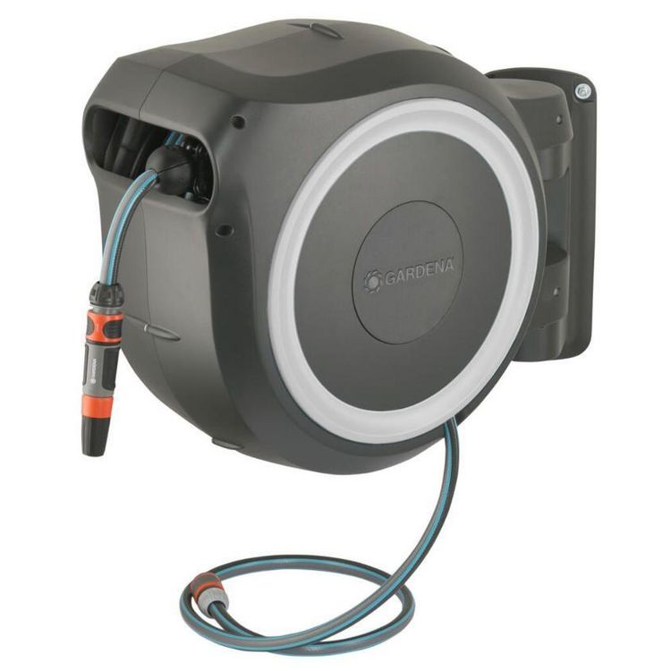 Le dévidoir automatique mural RollUp XL 35 m GARDENA est idéal pour arroser les très grands jardins. C'est une solution d'arrosage et de nettoyage très pratique pour avoir son tuyau d'arrosage toujours prêt à l'emploi et bien rangé. Une fois fixé au mur, le dévidoir automatique et mural GARDENA peut pivoter à plus de 180° afin de pouvoir arroser les moindres recoins du jardin ou de la terrasse. Il suffit de tirer sur le tuyau d'arrosage pour le dérouler puis de le relâcher pour l'enrouler. Grâce à la technologie RollControl, le dévidoir automatique mural GARDENA est équipé d'un frein centrifuge, d'un ressort en acier de haute qualité pour un enroulement toujours fiable et homogène du tuyau et d'un guide-tuyau intégré pour éviter les torsions lors de l'enroulement du tuyau. Le dévidoir GARDENA est équipé d'un nez de robinet accessible directement sur le flanc pour permettre une connexion/ déconnexion ou une extension facile du tuyau de raccordement. Un verrouillage du tuyau s'effectue à intervalles courts et réguliers (50 cm) pour permettre une manipulation sans effort du dévidoir automatique mural RollUp XL 35 m GARDENA. Une fois fixé au mur, le dévidoir peut être utilisé toute l'année car il dispose d'une protection anti-gel et anti-UV. Garantie 5 ans – Couleur : blanc.