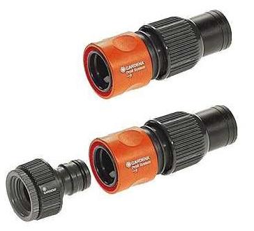 Equipement de raccordement grand débit Gardena pour relier au robinet une installation Sprinkler, Sprinkler Pro ou Pipeline.