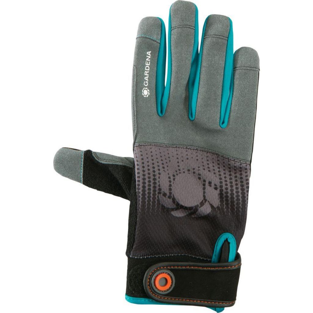 Les gants de jardin pour gros travaux de jardinage &ndash, GARDENA (Taille 8 / M) sont parfaits pour réaliser tous les travaux à l&rsquo,aide d&rsquo,outils de jardin mécaniques et motorisés (Ex. haches, coupe-branches, taille-haies). ). À la fois respirants, absorbants et recouverts d&rsquo,un renforcement entre l&rsquo,index et le pouce, les gants de jardinage GARDENA permettent de travailler tout en gardant vos mains toujours au sec dans la durée. Certifiés à 100% Oeko-Tex®, ils sont dépourvus de substances novices et respectent ainsi l'environnement, le jardin et vos mains. Les gants de jardin pour gros travaux de jardinage &ndash, GARDENA (Taille 8 / M) sont dotés de la technologie «, smart touch », au niveau du pouce et de l'index, pour vous permettre d&rsquo,utiliser votre smartphone sans avoir à enlever vos gants. Ils s'ajustent parfaitement à vos poignets grâce à sa matière flexible et offrent un confort optimal grâce au rembourrage sur la paume.