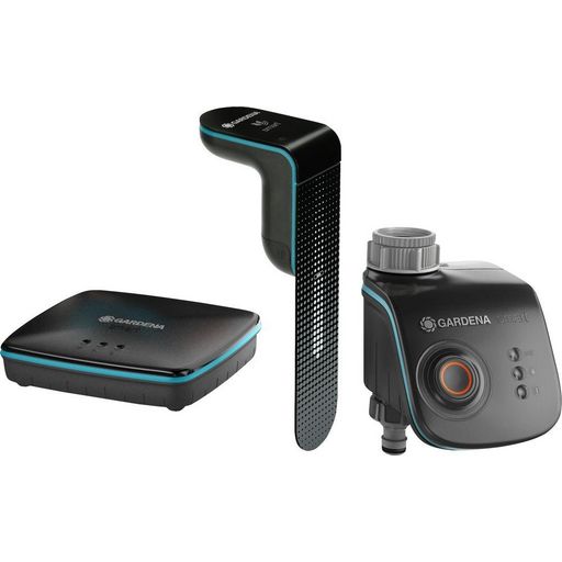 Le kit d&rsquo,arrosage connecté smart Sensor Control GARDENA comprend 1 boÎtier smart Gateway, 1 capteur météo connecté smart Sensor et 1 programmateur d&rsquo,arrosage connecté smart Water Control. Le boÎtier smart Gateway utilise votre réseau WIFI afin d&rsquo,établir une connexion au réseau internet et ainsi permettre une communication sans fil entre l&rsquo,application mobile smart App GARDENA, le capteur météo smart Sensor et le programmateur d&rsquo,arrosage smart Water Control. Le capteur météo connecté GARDENA mesure l&rsquo,humidité du sol , la luminosité et la température extérieure. Il transmet ensuite ces données en temps réel via l&rsquo,application afin de vous permettre de savoir si vos plantes doivent être arrosées ou non. Le programmateur connecté GARDENA, vous permet alors de contrôler et piloter à tout moment et de n&rsquo,importe où, l&rsquo,arrosage de votre jardin en quelques clics. Configuration requise : Router wifi avec accès à internet et téléchargement gratuit de l'application smart App GARDENA (iOS / Android). Le capteur météo fonctionne avec 2 piles AA 1,5 V alkaline (LR6 non fournies).