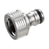 Le nez de robinet Premium 21 mm (G 1/2 ) GARDENA est fabriqué en métal robuste de haute qualité et permet une connexion sécurisée entre le robinet et le tuyau d'arrosage. Le nez de robinet est facile et pratique à visser au robinet. Le nez de robinet Premium 21 mm (G 1/2 ) GARDENA est anti-éclaboussures grâce à 3 ailettes intégrées à l'intérieur afin d'obtenir un jet d'eau droit et éviter d'éclabousser partout. Le nez de robinet anti-éclaboussures est adapté pour les robinets 16,7 mm (G 3/8 ) avec filetage 21 mm (G 1/2 ). Fabriqué en Allemagne et garantie 5 ans.