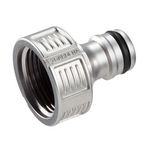 Le nez de robinet Premium 26,5 mm (G 3/4 ) GARDENA est fabriqué en métal robuste de haute qualité et permet une connexion sécurisée entre le robinet et le tuyau d'arrosage. Le nez de robinet est facile et pratique à visser au robinet. Le nez de robinet Premium 26,5 mm (G 3/4 ) GARDENA est anti-éclaboussures grâce à 3 ailettes intégrées à l'intérieur afin d'obtenir un jet d'eau droit et éviter d'éclabousser partout. Le nez de robinet anti-éclaboussures est adapté pour les robinets 21 mm (G 1/2 ) avec filetage 26,5 mm (G 3/4 ). Fabriqué en Allemagne et garantie 5 ans.