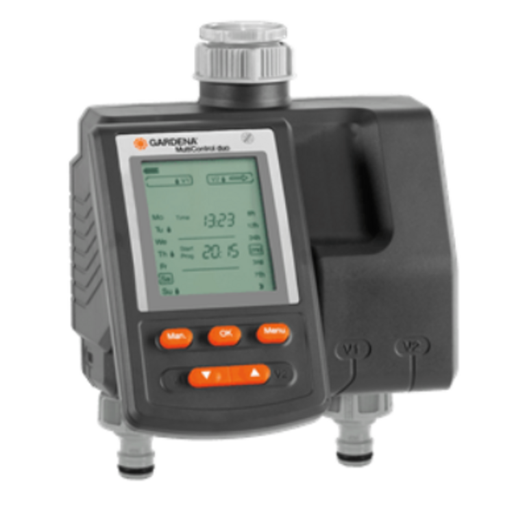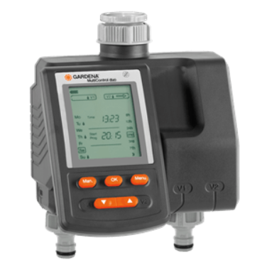 Gardena 1874-20 Avec le programmateur d'arrosage MultiControl duo de GARDENA 1874-20, vous pouvez arroser 2 zones de jardin. Par exemple, votre pelouse à l'arrière de votre maison et vos massifs à l'avant. Les 2 sorties sont programmables individuellement. Ce qui signifie que vous pouvez choisir l'h