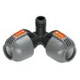Raccord d',angle d',arrosage enterré Gardena. Pour raccorder facilement au réseau des arroseurs situés dans les angles. Pour tuyau 25 mm . Filetage 15/21 mâle.