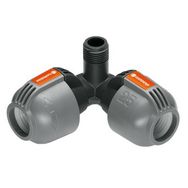 Raccord d',angle pour arrosage enterré Gardena. Pour raccorder facilement au réseau des arroseurs situés dans les angles. Pour tuyau 25 mm . Filetage 20/27 mâle.