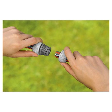 Le réparateur de tuyau d'arrosage permet de réparer rapidement les tuyaux et sans outil. Il vous suffit de couper la partie de tuyau endommagée et d'insérer le réparateur dans la partie en question. Convient pour des tuyaux d'arrosage de diamètre 13 mm (1/2’’) et 15 mm (5/8’’).