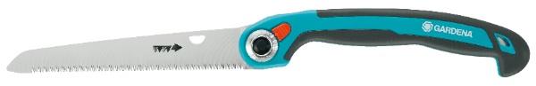 Grâce à une longueur de lame de 200 mm, les travaux de sciage sont faciles avec la scie à élaguer repliable 200 P GARDENA. La scie garantit un sciage précis avec une action de coupe douce. La scie de jardin est équipée d'une lame de scie chromée qui protège de la corrosion et lui assure une longue durée de vie. Lors du sciage, la denture trempée avec triple affûtage garantit une grande précision sans effort. La poignée ergonomique avec butée anti-glissement à l'extrémité contribue au confort et vous avez toujours une prise sûre et ferme. Avec la lame de scie verrouillable, vous avez le choix entre 3 angles de coupe afin de pouvoir couper le plus précisément possible. Après le jardinage, il suffit de replier la lame de la scie et elle est rangée dans la poignée. Pour le rangement, vous pouvez aussi accrocher la scie à l'aide de l'oeillet pour gagner de la place et la garder à portée de main à tout moment. La scie à élaguer repliable 200 P GARDENA est un produit de qualité fabriqué en Allemagne.
