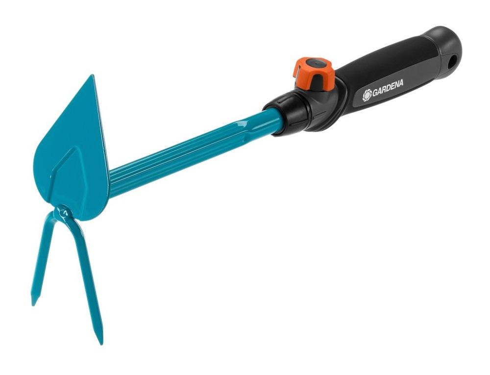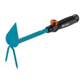 - Un outil combisystemextensible et interchangeable: Cette serfouette fait partie de la gamme combisystem GARDENA. Sa poignée est facilement amovible (molette de fixation en plastique souple) et peut être remplacée par tous les manches combisystempour un travail accroupi ou debout. La connexion fiable entre le manche et l'outil assure un travail en toute sécurité.
