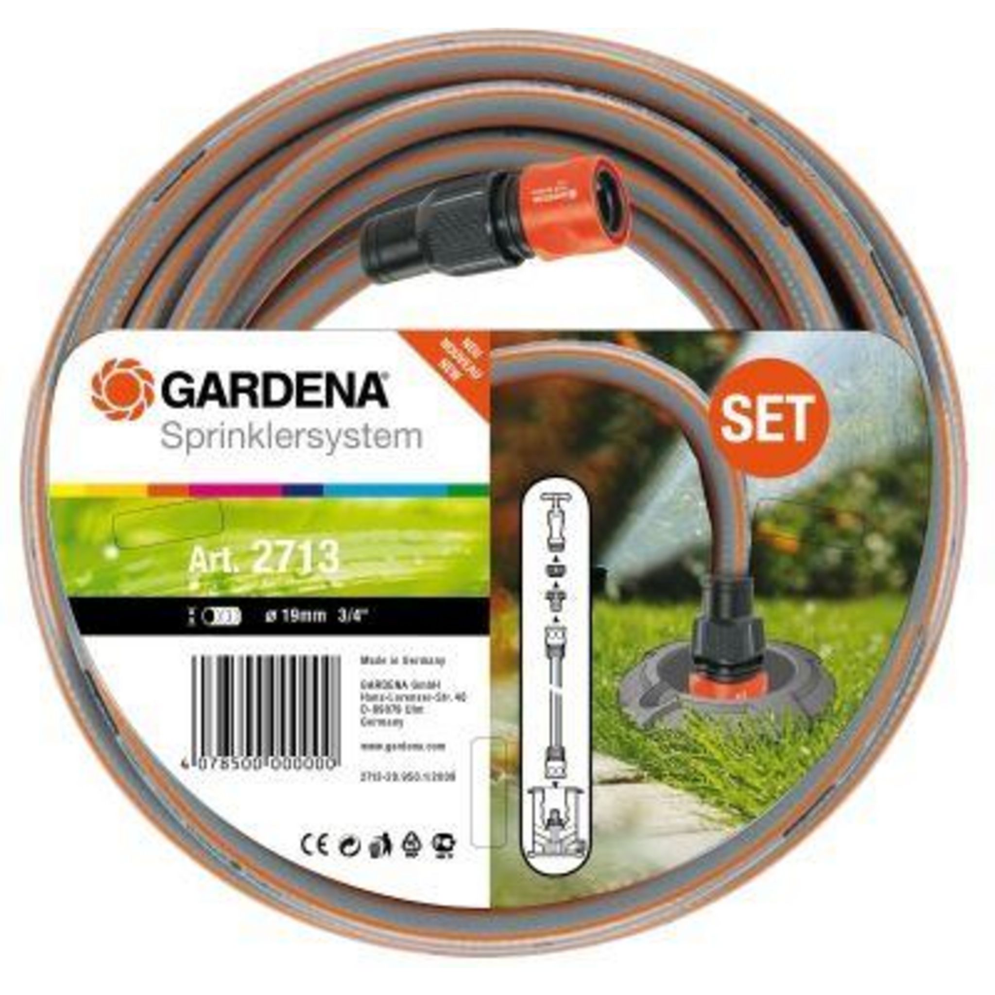 Contenu: 1 nez de robinet grand débit 20/27 ou 26/34. 2 raccords rapides grand débit.2 mètres de tuyau Classic Gardena diamètre 19 mm.