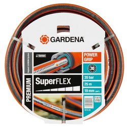 Couronne de tuyau d',arrosage premium Gardena de la gamme SUPERFLEX , avec renfort tricoté en carbone. Diamètre 19 mm, longueur 25 m. Le tuyau est équipé de la bande PowerGrip pour une connexion parfaite entre le tuyau et le raccord d',arrosage.