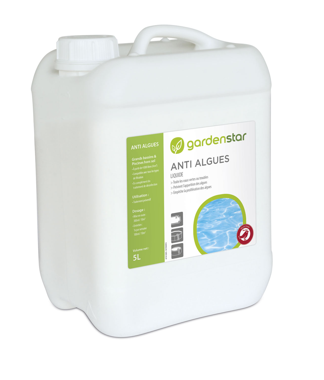 L'anti-algues prévient l'apparition des algues qui peuvent rendre l'eau verte ou trouble. Ce traitement sert uniquement à la prévention, il ne peut être utilisé quand les algues sont déjà présentes, le produit ne fera pas disparaître les algues de votre piscine.