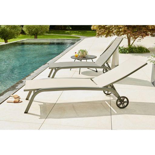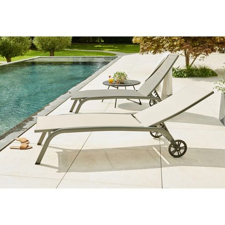 Chaise longue en aluminium gris avec roues