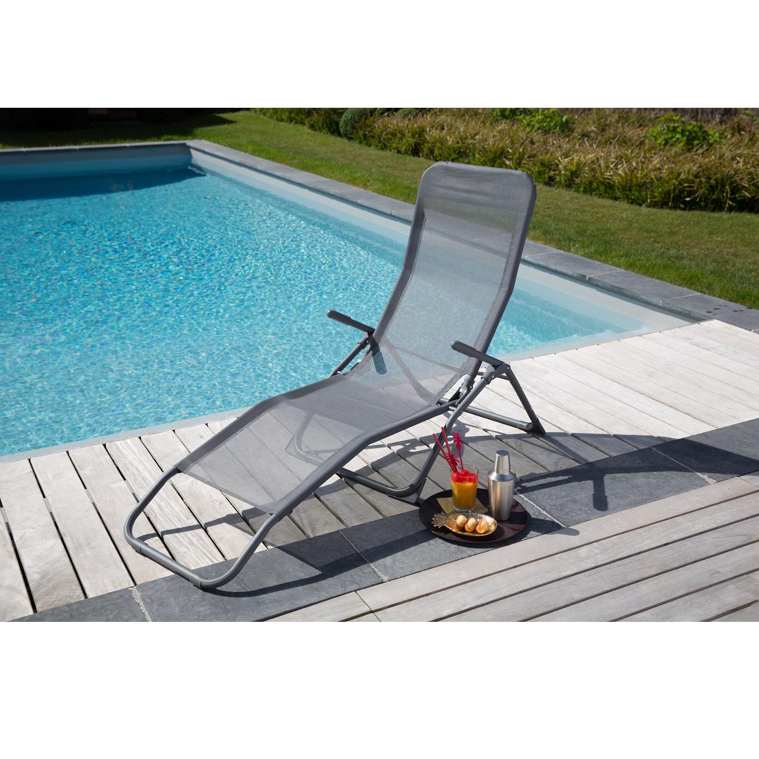 Bain de soleil pliable - Acier et textilène - 134x62x22cm - Gris foncé