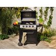 Barbecue à gaz 4 brûleurs en acier noir, équipé de deux roues pour un déplacement facile et d'un allumage Push&Turn pour des démarrages rapides.