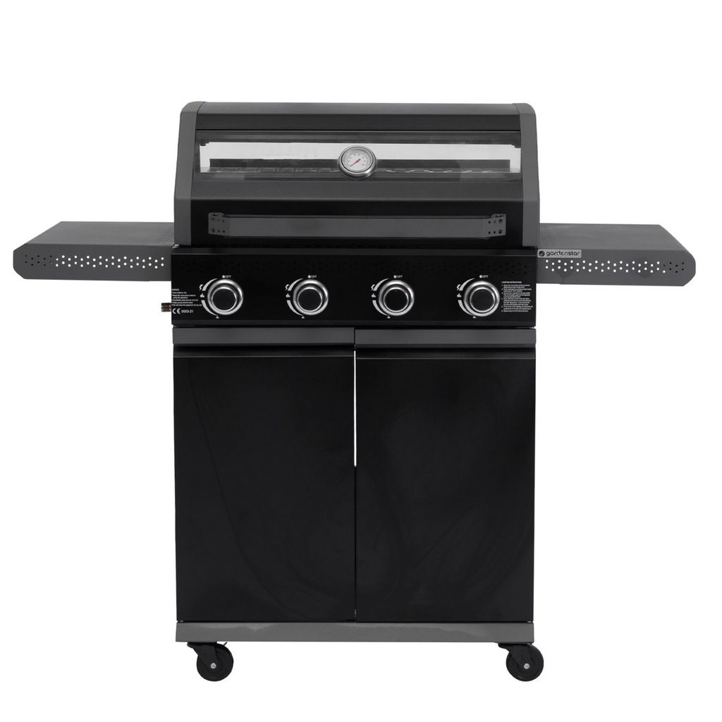 Barbecue gaz en acier - 4 bruleurs - 4 roues