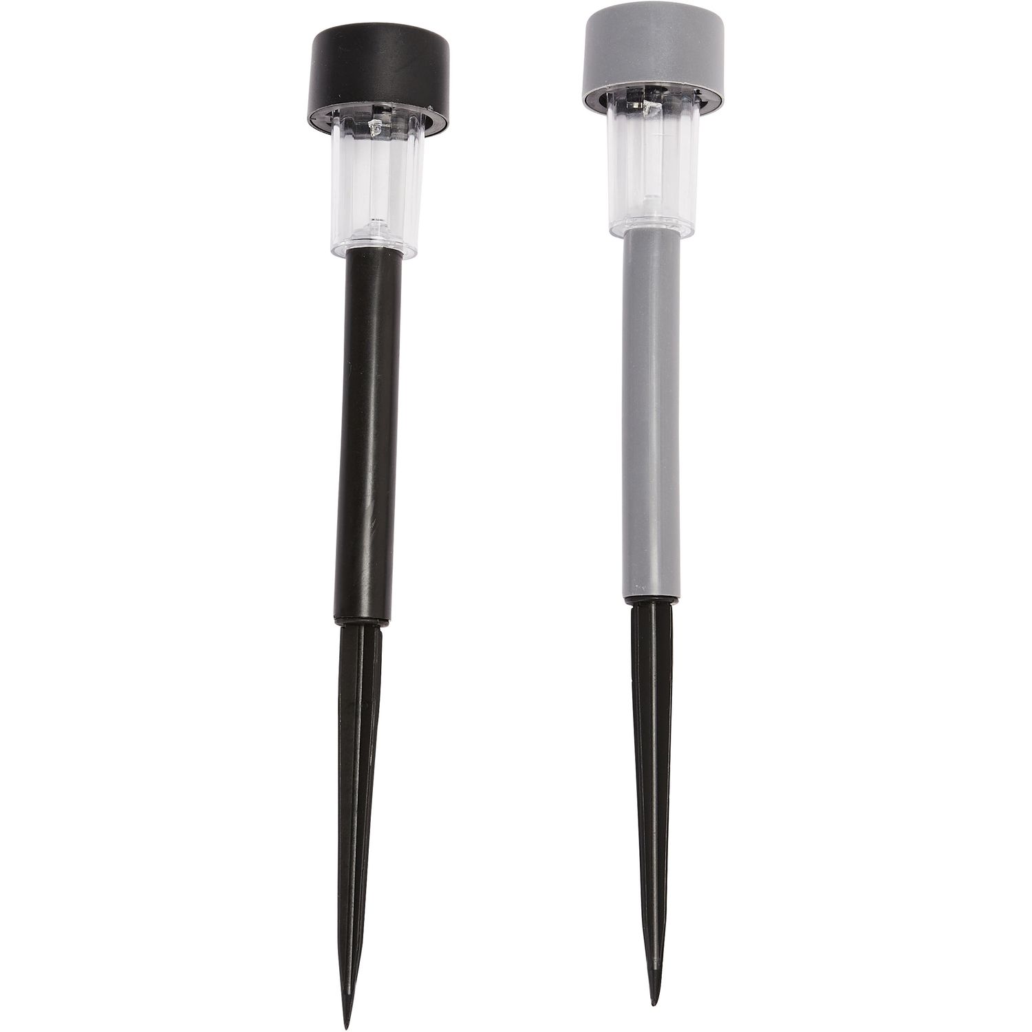 Lampe de jardin solaire, corps noir et gris mélangé à 50% chacun.