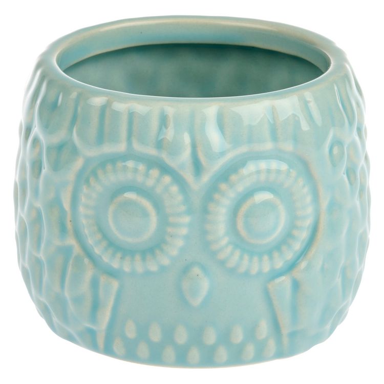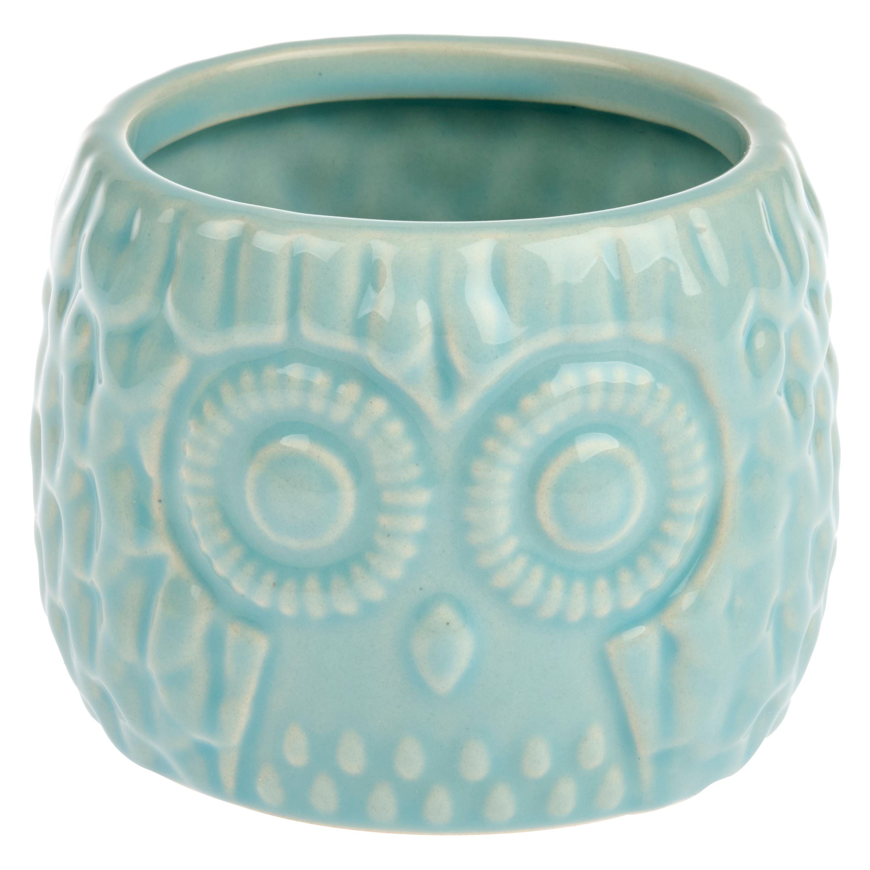 Cache pot en grès Hibou D11.5 cm - Bleu