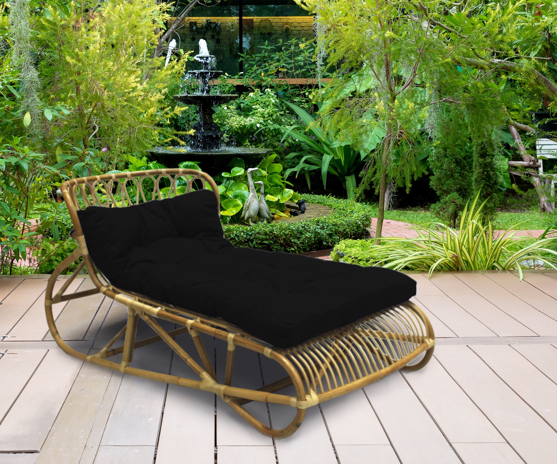 Chaise longue en rotin naturel de dimensions : 80x160x73cm avec coussin 100% polyester