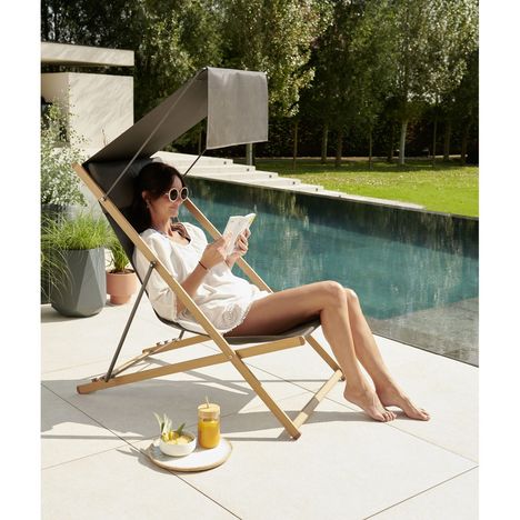 Découvrez, tout en originalité, ce transat avec un pare soleil gris anthracite ! A vous les moments détentes tout en étant à l'abris du soleil pour lire en toute tranquillité dans votre jardin.