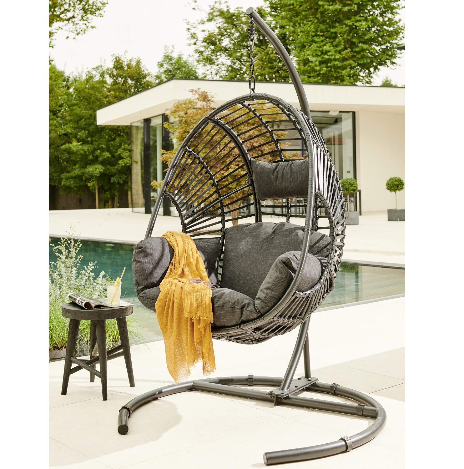 Fauteuil Œuf suspendu acier noir QUITO