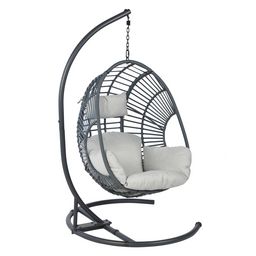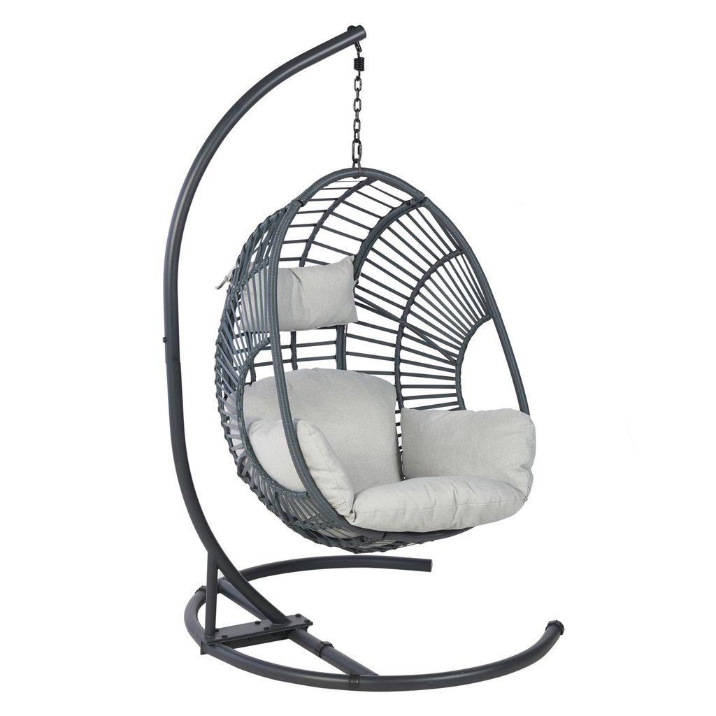 Fauteuil oeuf suspendu de jardin - Acier - Gris - 122x120x188cm