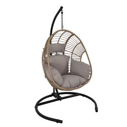 Fauteuil oeuf suspendu en rotin et acier - osier naturel et noir