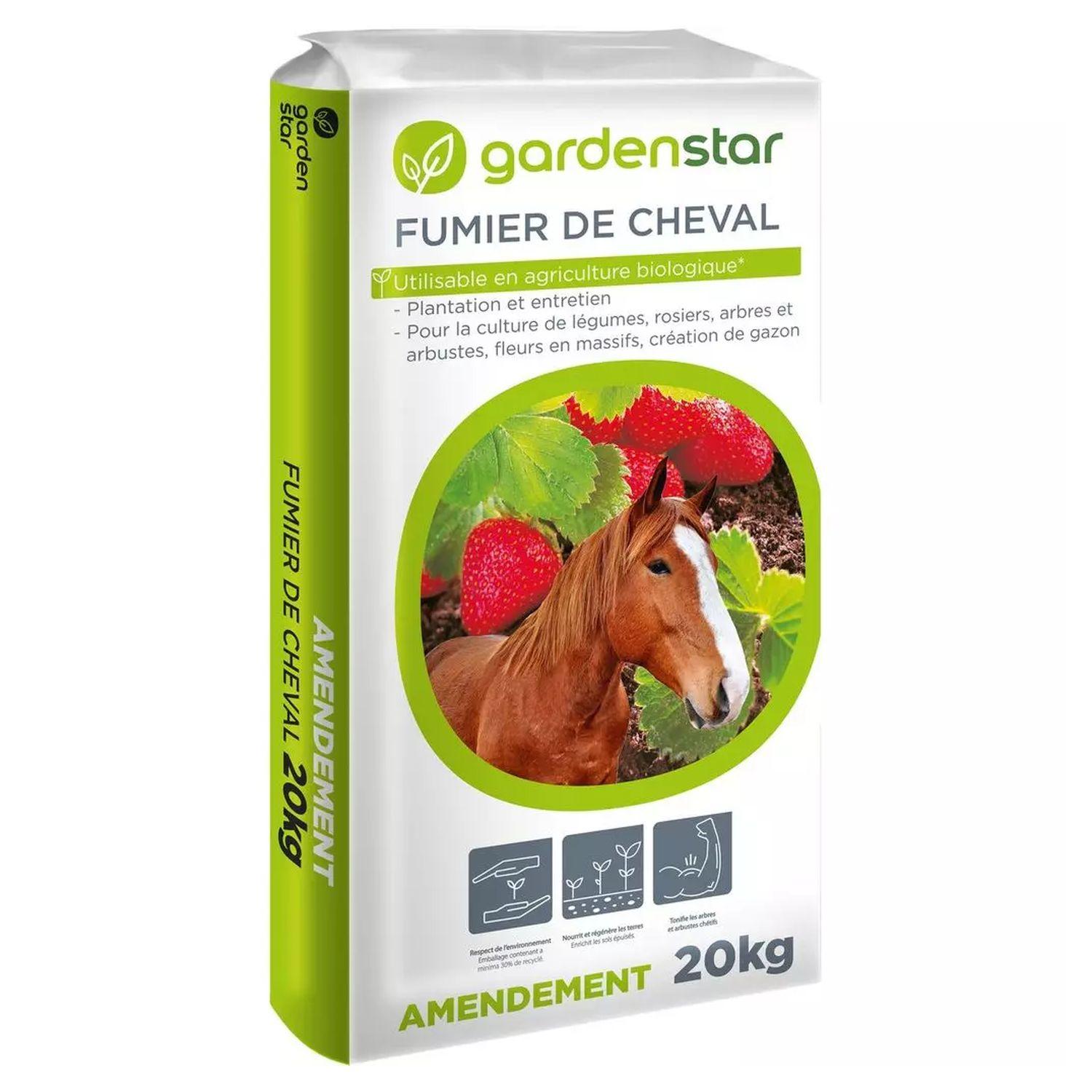 Ce fumier de cheval GARDENSTAR sera idéal pour tous les types de cultures. Composition : Fumier de cheval sur litière