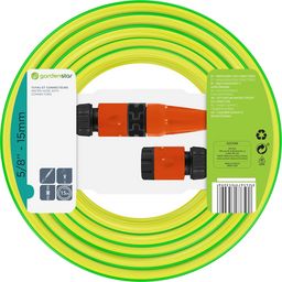 Ce kit tuyau d'arrosage GARDENSTAR de 15 mètres de longueur de de 15 mm de diamètre vous permettra d'arroser tout votre jardin facilement. Il contient : lance droite, raccord rapide + raccord rapide stop + nez de robinet + tuyau d'arrosage D 15mm, L 15m. Le tuyau est antivrille et ne se tord pas ! Sa texture est spécialement conçue pour éliminer la formation des nœuds ni étranglements.