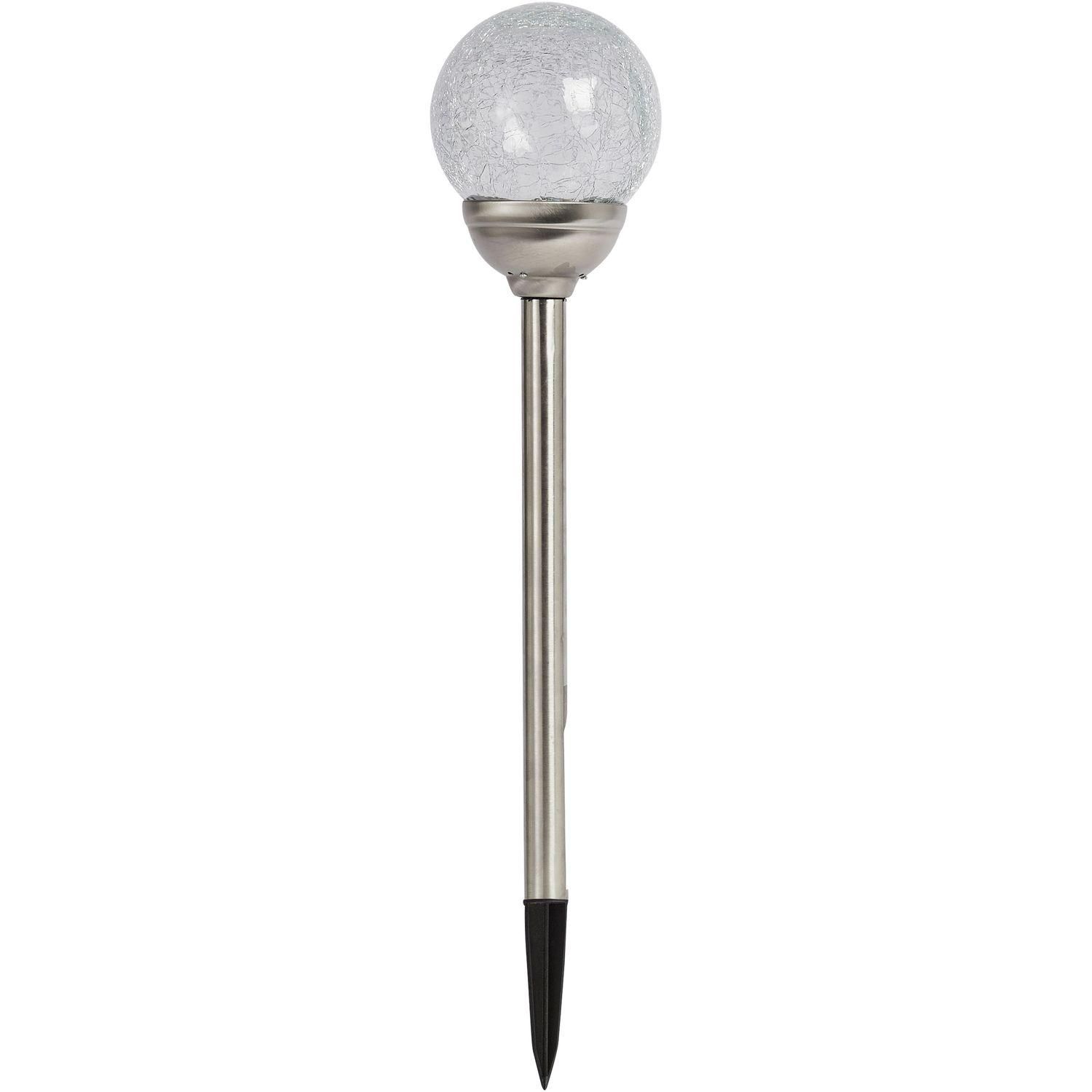 Apportez une touche de décoration et d'éclairage à votre jardin grâce à cette lampe de jardin solaire en acier inoxydable d'une hauteur de 51 cm avec ampoule en verre.