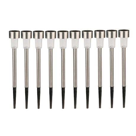 Lot 10 bornes solaires en acier inoxidable et plastique recyclé 4,5 x 4,5 x 35 cm (±10%).