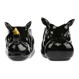 Lot de 2 caches pots en grès Hippo et Rhino – Noir