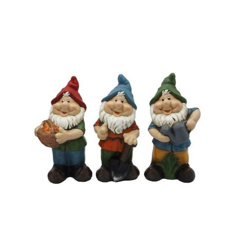 Lot de 3 nains de jardin en terre cuite - 3 coloris