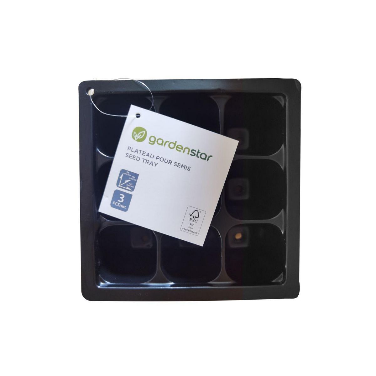 Lot de 3 plateaux à semis de 9 godets 13.5x13.5x5.6 cm - Noir