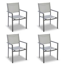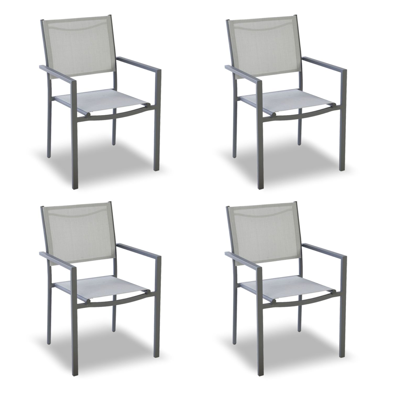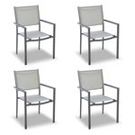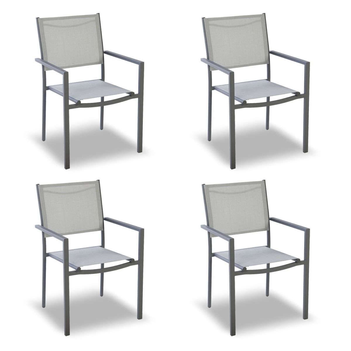 Lot de 4 chaises de jardin en acier empilable - Textilène - Gris
