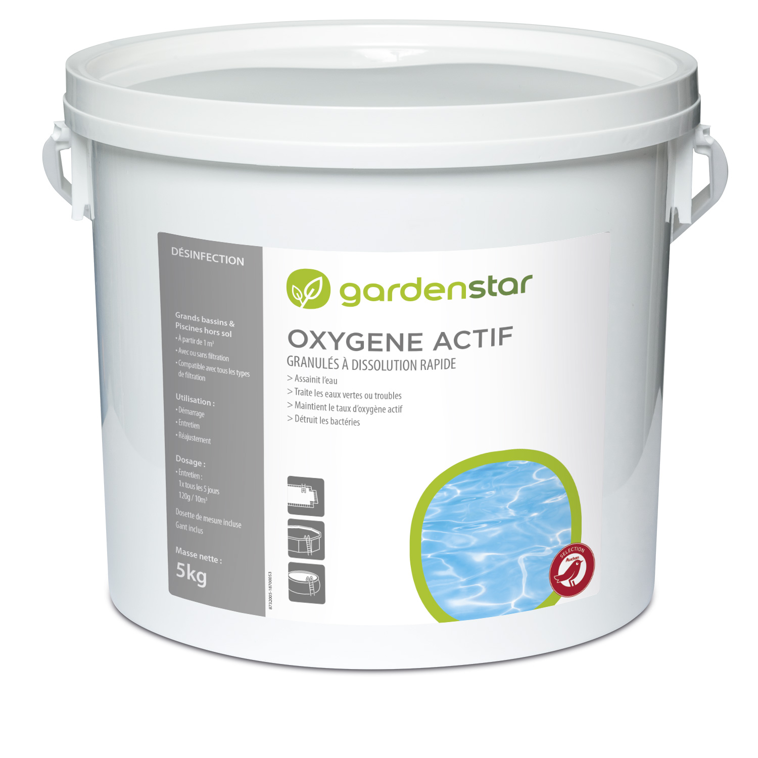 L'oxygène actif est totalement inoffensif pour la peau et pour les yeux. Il évite la décoloration des cheveux, des vêtements et est complètement inodore. L’oxygène actif est souvent utilisé en complément d’un désinfectant de piscine. C’est un oxydant très puissant qui détruit les matières organiques présentes dans l’eau.