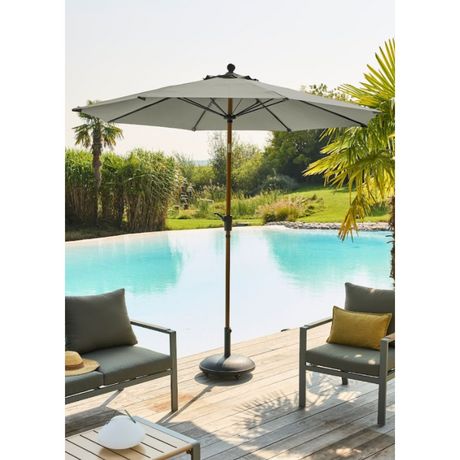 Parasol - Aluminium - D 2.70m - Effet bois - Kaki