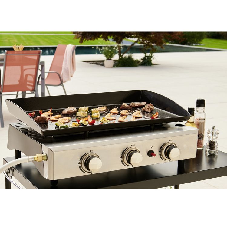 Profitez de bonnes grillades avec la plancha acier émaillé. Elle possède trois brûleurs pour une puissance 3 x 2.5 KW. Simple d'utilisation; l'allumage se fait par piezzo. Sa surface de cuisson vous permet de cuisiner de bons petits plats pour 8 convives. La plancha permet de partage une cuisine saine et savoureuse en toute convivialité.