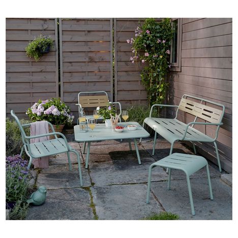 Salon bas de jardin - 4 places - Acier - Vert pâle