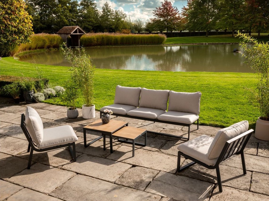 Salon bas de jardin - 5 places - Aluminium - Gris clair