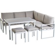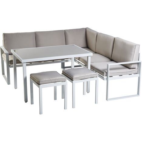 Profitez d'un super moment de détente avec ce salon bas de jardin de la marque GARDENSTAR. Ce salon de jardin en aluminium blanc, et ses coussins coloris taupe apporteront un jolie coin repas ou de détente sur votre terrasse ou dans votre jardin. Ce salon de jardin bas est composé d'un canapé 3 places, un canapé 2 places, 2 tabourets et une table de jardin pouvant servir aux repas ou à la détente. Idéal pour accueillir 7 personnes.