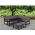 Ce salon bas de jardin LOUNGE est idéal pour recevoir vos amis ou famille ! Composé d'une table, d'un sofa 3 places, d'une sofa 2 places et de 2 tabourets, ce salon bas est conçu en aluminium pour plus de robustesse. Équipé d'une table avec plateau verre trempé, ce salon bas LOUNGE ne demande que très peu d'entretien. Ses coussins en polyester apportent tout le confort nécessaire pour profiter des beaux jours.