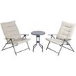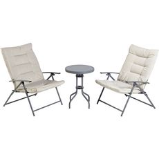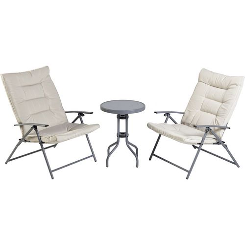 ENSEMBLE BALCON ACIER 3PCS TABLE DESSUS VERRE D45CM 2 FAUTEUILS PLIANTS REMBOURRÉS