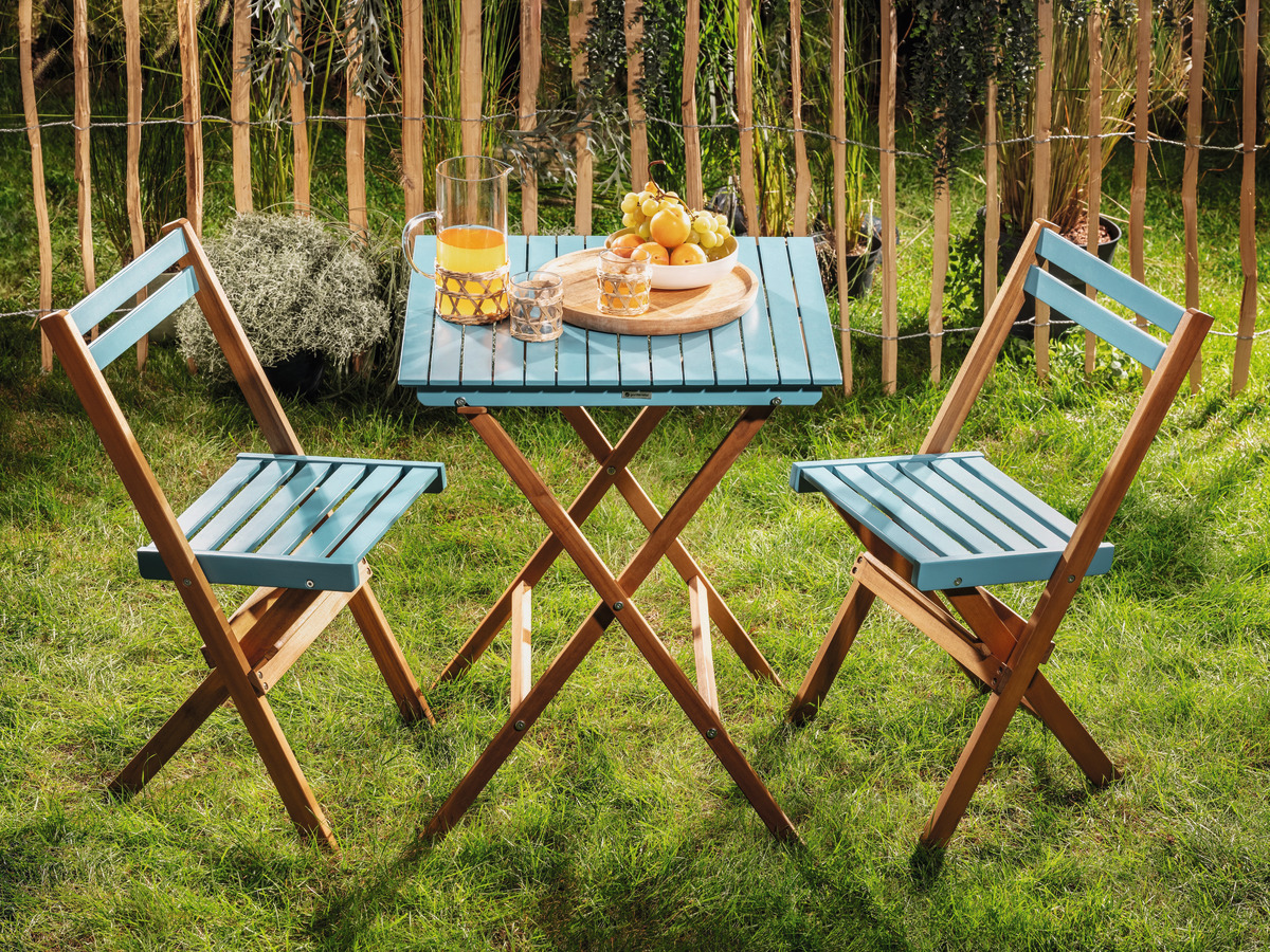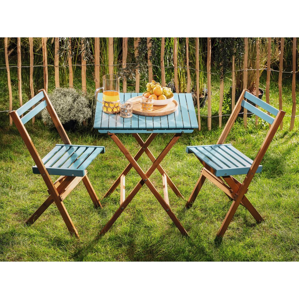 Salon de jardin - 2 places - Bois d'acacia - Bleu