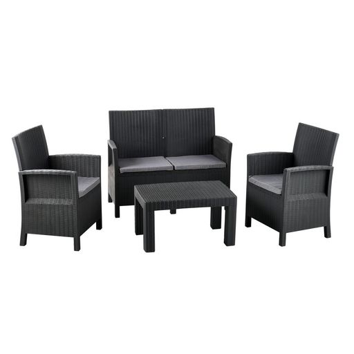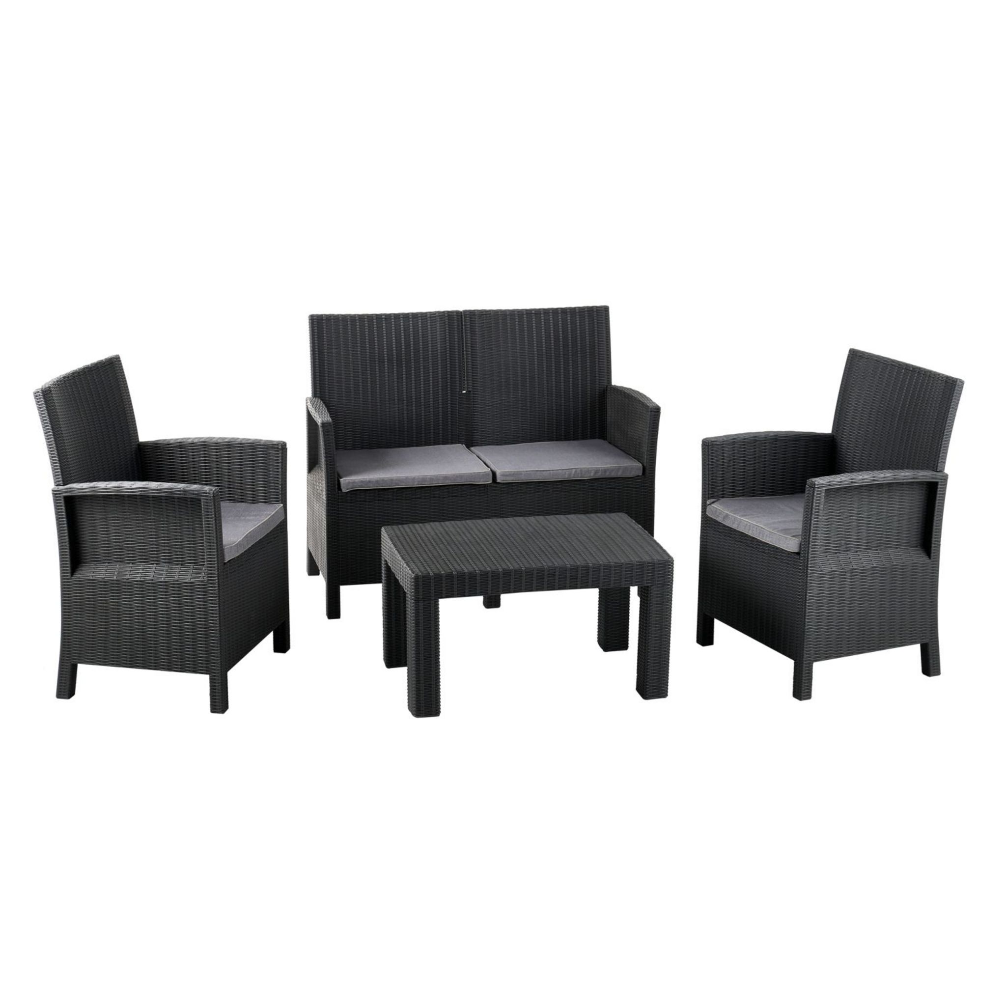 Salon de jardin bas en résine 4 places - Gris Anthracite