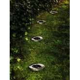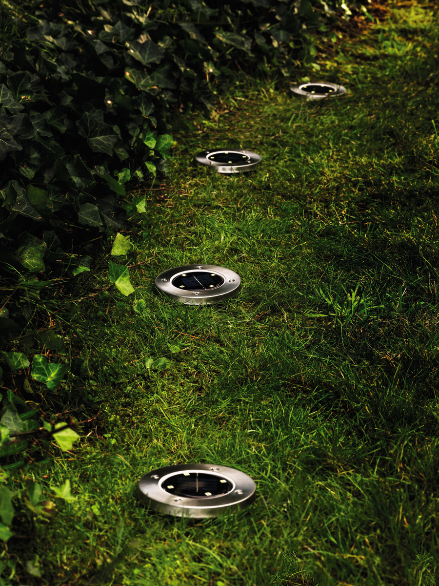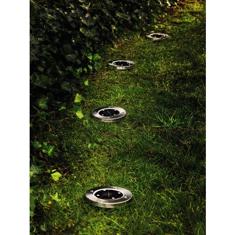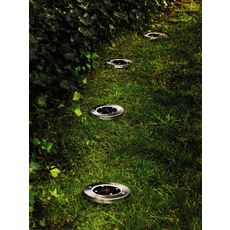 Ce set de 4 spots solaires encastrables- 6 Lumen vous de GARDENSTAR vous permettra d'éclairer votre allée ou votre jardin facilement. Ces spots se rechargent au soleil grâce au capteur situé au dessus.