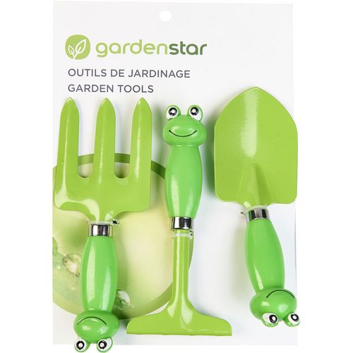 Set 3 outils enfants grenouille : ludique et sûr, éveillez la passion du jardinage dès le plus jeune âge.