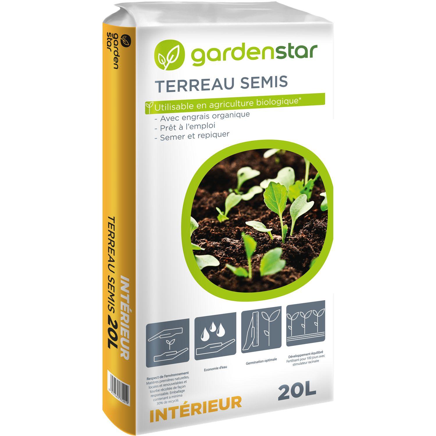 Ce terreau GARDENSTAR sera parfait pour vos semis et votre potager. Composition : Tourbe blonde, noire, compost vert, sable, engrais
